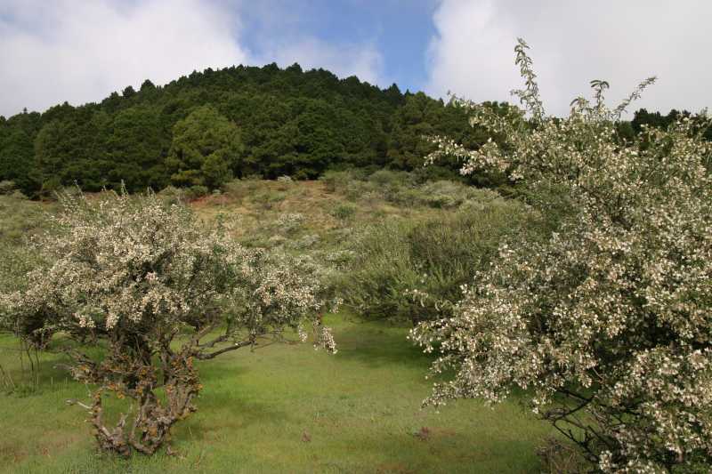 12339. On some places Canary Island pine, Pinus canariensis, forest can be seen, here behind the ? orchard