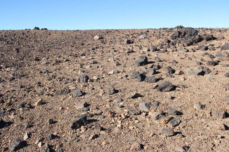 24254. Most part of the southeastern peak of the Viejo is a vast sand plain, dotted with head-sized rocks