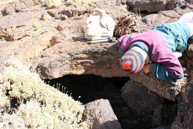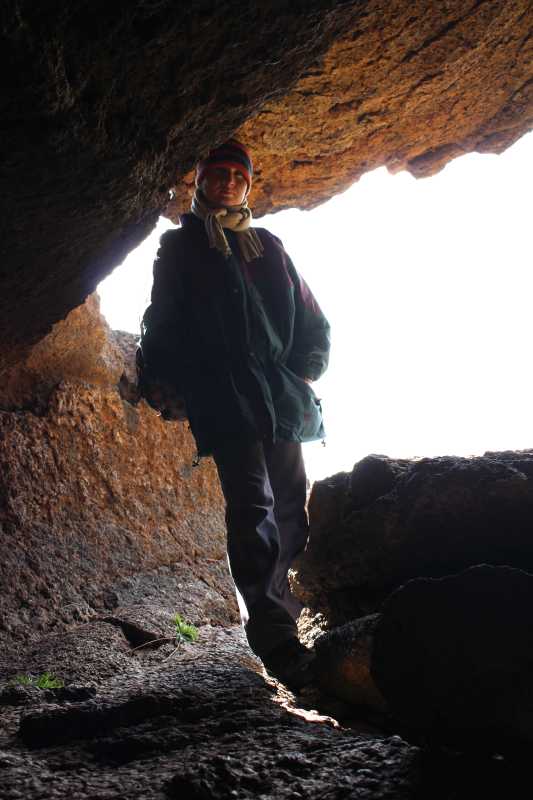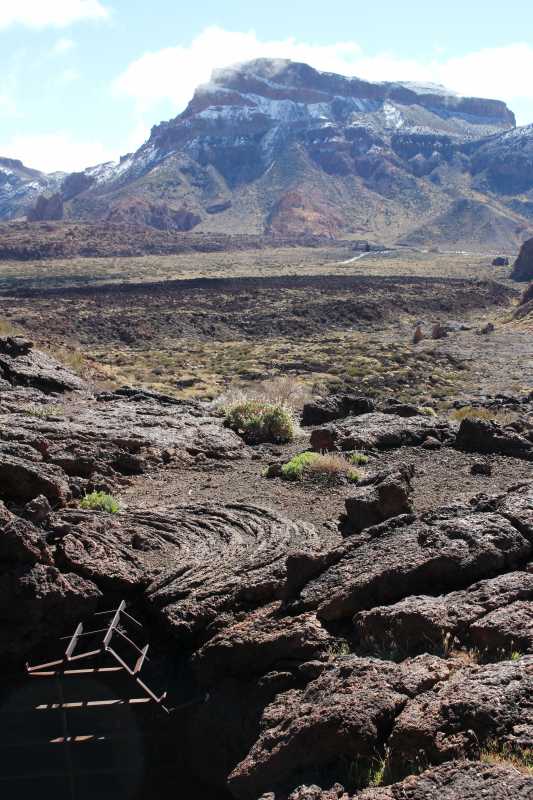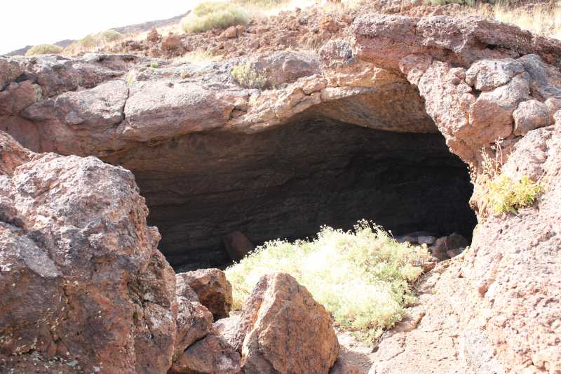 The caldera of the ancient volcano, Las Canadas, at 2000 meters a. s. l. and above, is part of the Teide National Park (Parque Nacional del Teide) and offers numerous sites of great interest to visitors. One of them is Roques de Garcia, a group of monumental rock towers. To the north of this group, on the slope of the Pico Viejo (3.135 m), a large field of Pahoehoe-type lava is to be found, and in it quite a few volcanic caves, lava tubes. Most of them are small, two are larger and longer. For a cave fan they provide a nice distraction on the ascent from Roques de Garcia to Pico Viejo (4 hours, trail 23) and they are easily located. Cave names on this page have been given by the author.