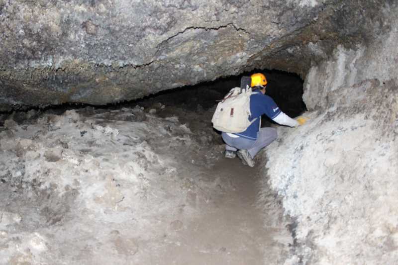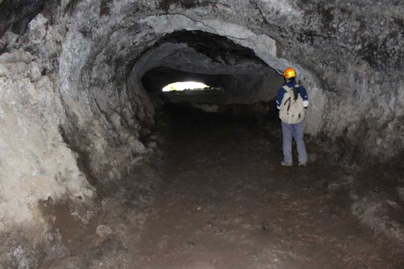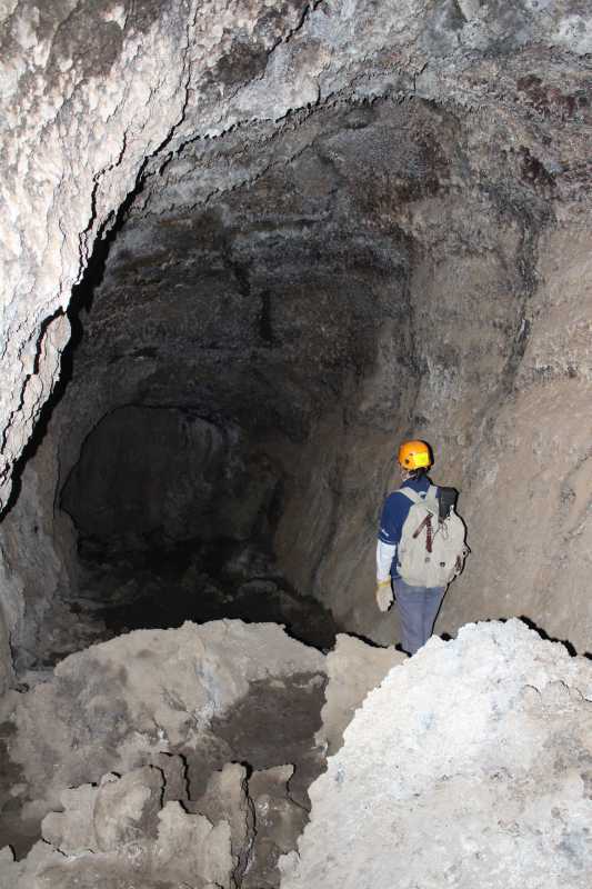 24513. The main passage is wider at the top, with solidified lava tongues at the floor.