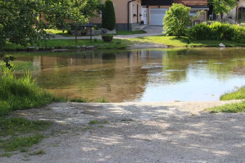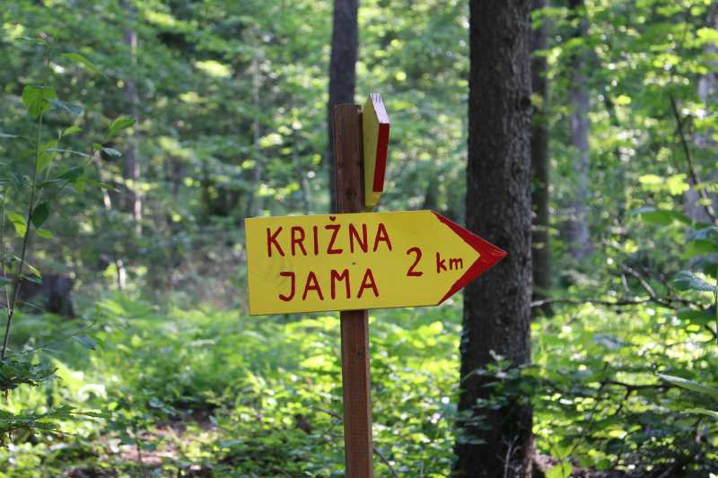 25817. Standard access to Križna jama is via Bloška polica, from the north. But there is also a more romantic, and even shorter, western access. From the highway Ljubljana - Postojna (E 61) use exit Unec and continue in the direction of Cerknica. Drive through Cerknica where, at the end of the place, stocks can be replenished at two stores - a Hofer and a large Mercator supermarket. Continue in the direction of Grahovo, drive through Grahovo and at the end of the slight downhill, also the end of the village this scene pops up - the junction of the road to Žerovnica, center right.