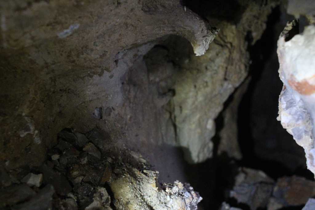34286. Another hot spot was discovered about 15 m to the south of Topli rov entrance, along the same (eastern) wall, about 5 m above the cave floor. It really looks like an entrance to another, half lower tunnel (in the bunny-shaped shadow).