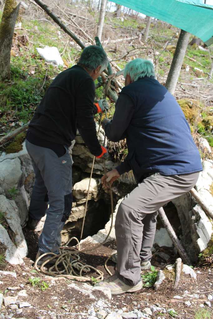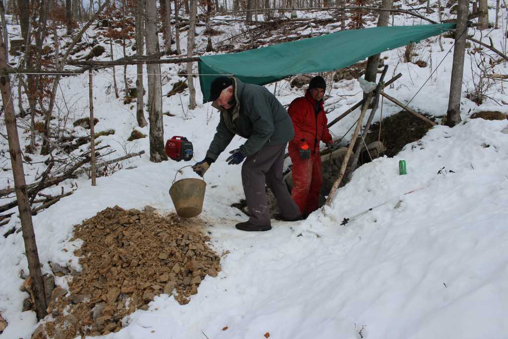 33883. Today's excursion was a trans-generation effort - kudos to Vili, who did his best and joined the team - Mare hauled the buckets (50 of them in all) of excavated material up the entrance shaft and Vili emptied them on the pile.
