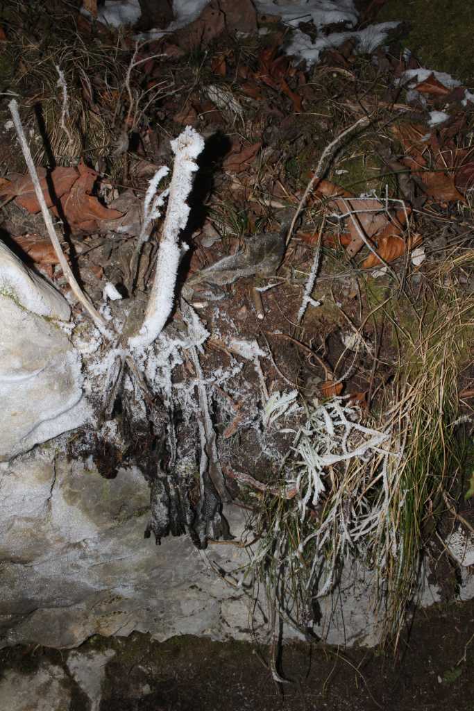 34099. Ice stalagmites below the terrace, Brajko; painting with light, 20 second exposure