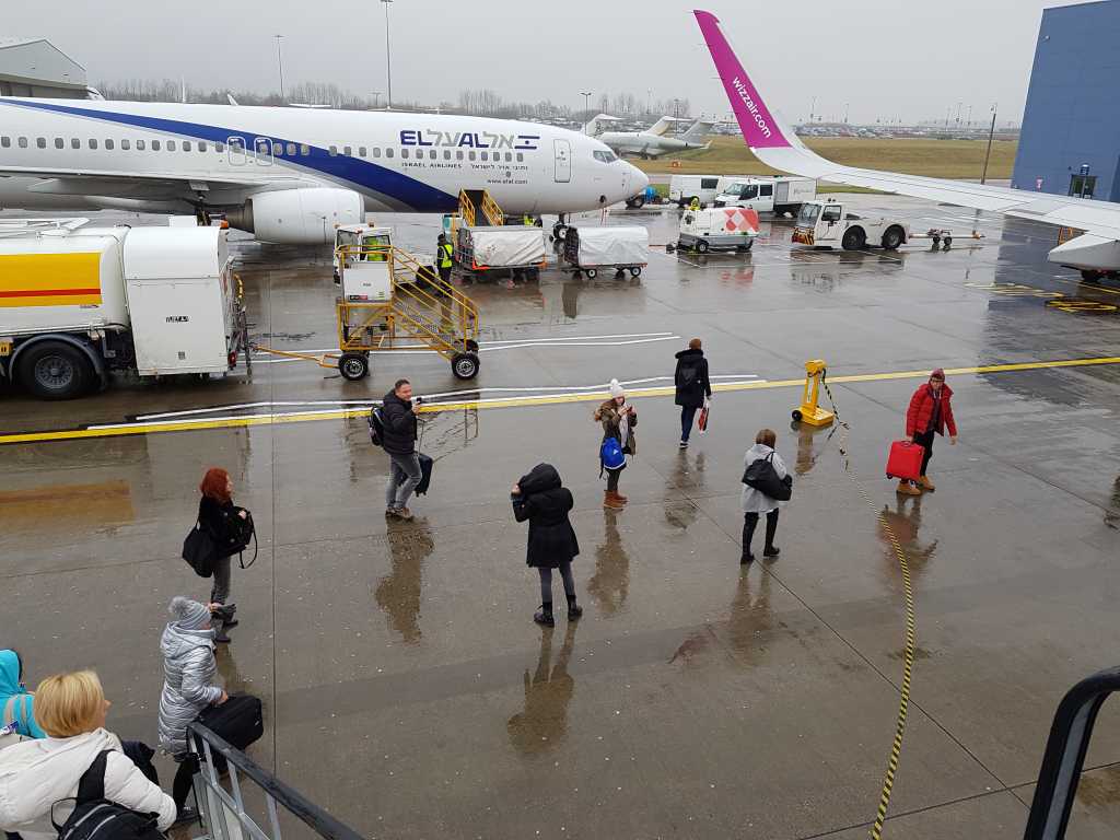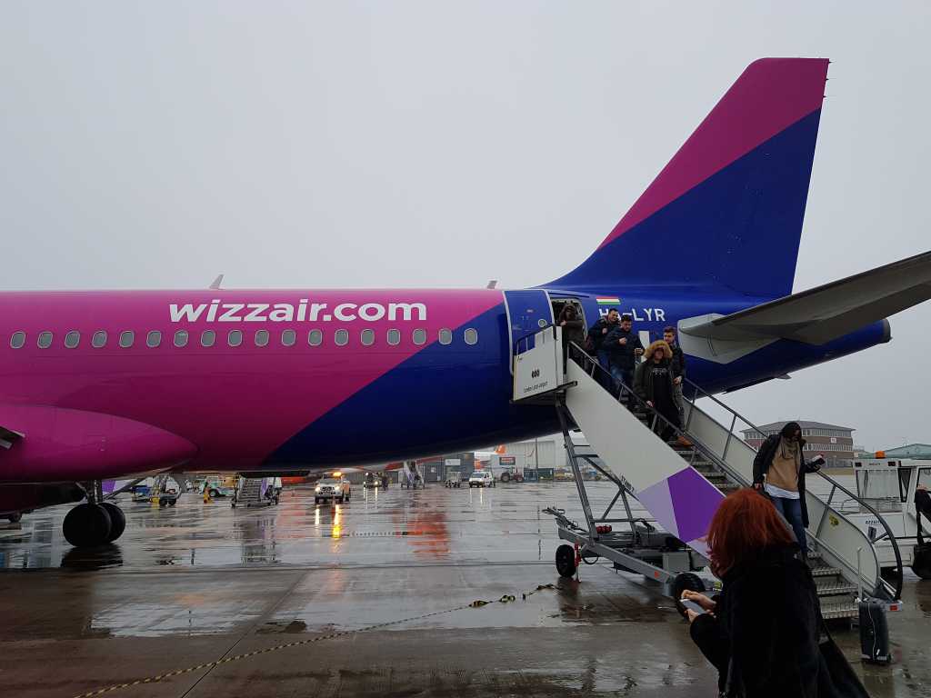 38218. Back half of the Wizzair plane with the passengers disembarking from the rear left door