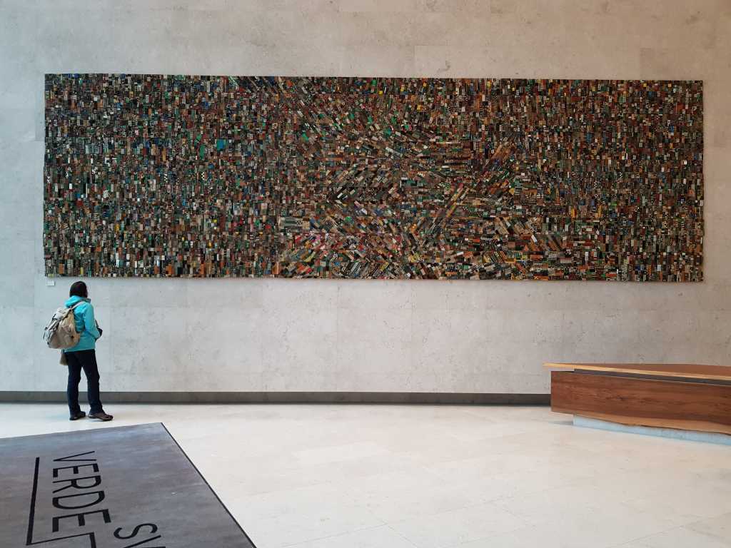 38225. Elias Sime, Tightrope 7, 2009 - 2014, reclaimed electronic components, mixed media and wire on panel. Business building on Victoria street
