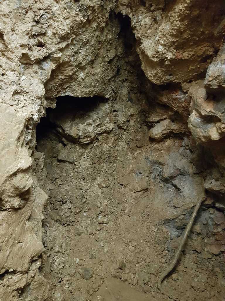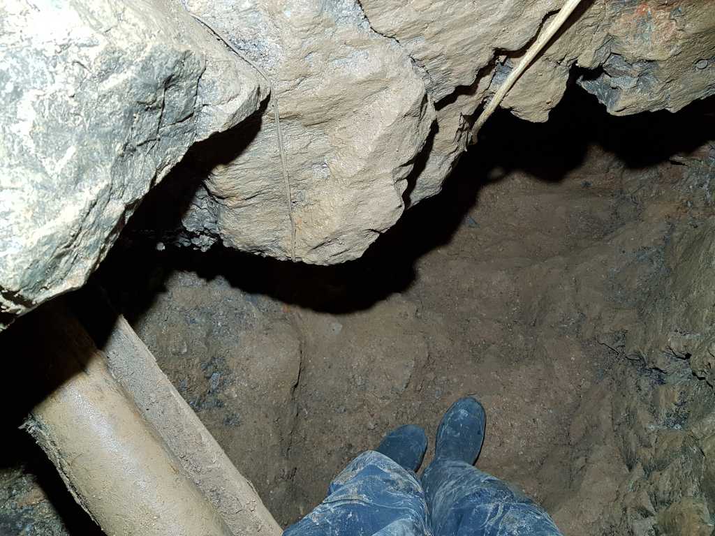 43852. ... also shows a solid ceiling. Which means that further digging could be done without the fear that it would trigger the collapse movement. The draft in the cave was constant, all the way from the entrance to the bottom, but it was hard to say where it disappeared in the collapse.