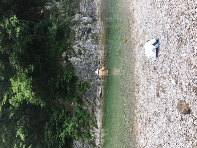 5705 (M. Vodušek). When Boja had enough of ball boy job it happened that the flying ring landed precisely at the deepest point of the pool. The author threw it and the author fetched it.