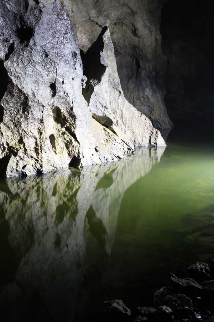 48222. Upstream view of a hall, the last accessible on foot. At the right are remnants of a wooden trail, built between the WWI and WWII by Italian army. As the cave entrance was very close, at the time, to the border between Italy and Yugoslavia, there were plans to make an underground tunnel through which Italian tanks could drive to the border unnoticed. The trail depicted here was part of preparatory works.