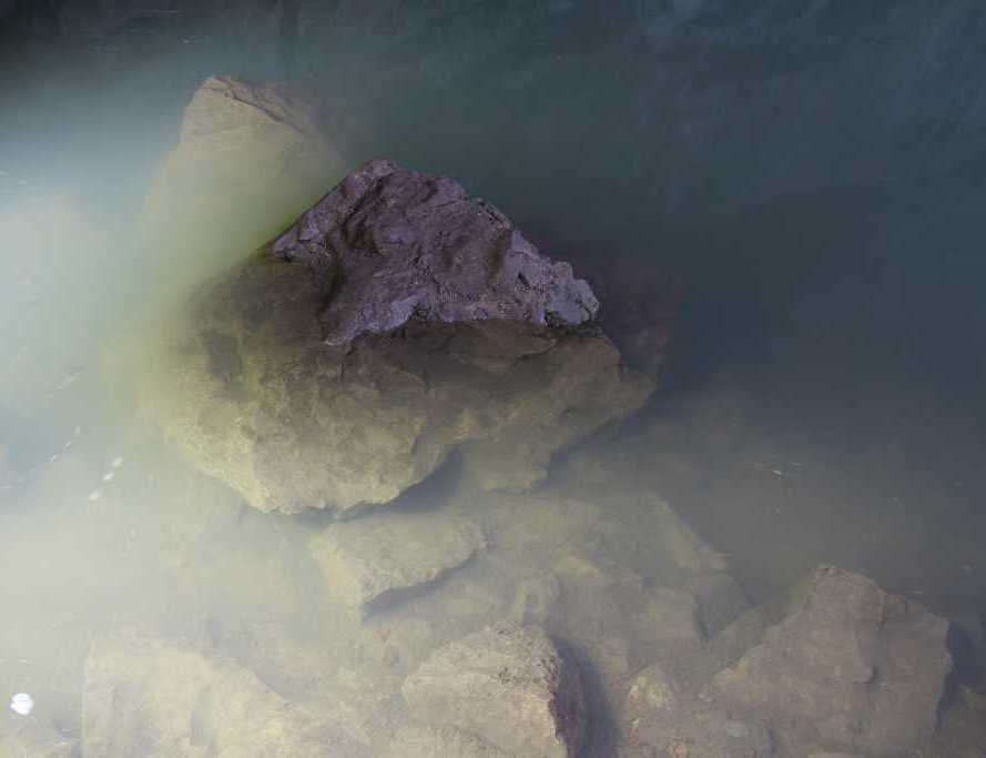 48970. Na vzhodni strani Vhodne dvorane je obilen dež priklical tale potoček ob strani. Do jezera ni prišel, je prej poniknil v grušč.