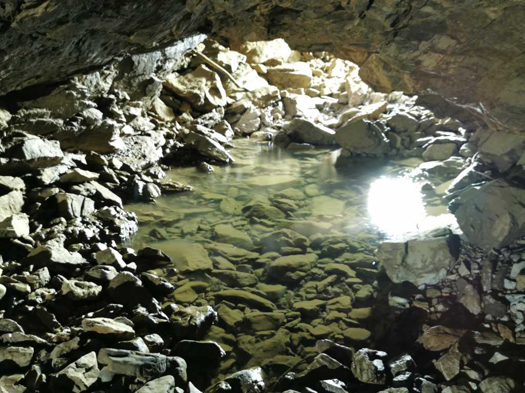49083. Pogled iz rova pred jezercem nazaj proti prehodu, ki pelje v vhodno dvorano.