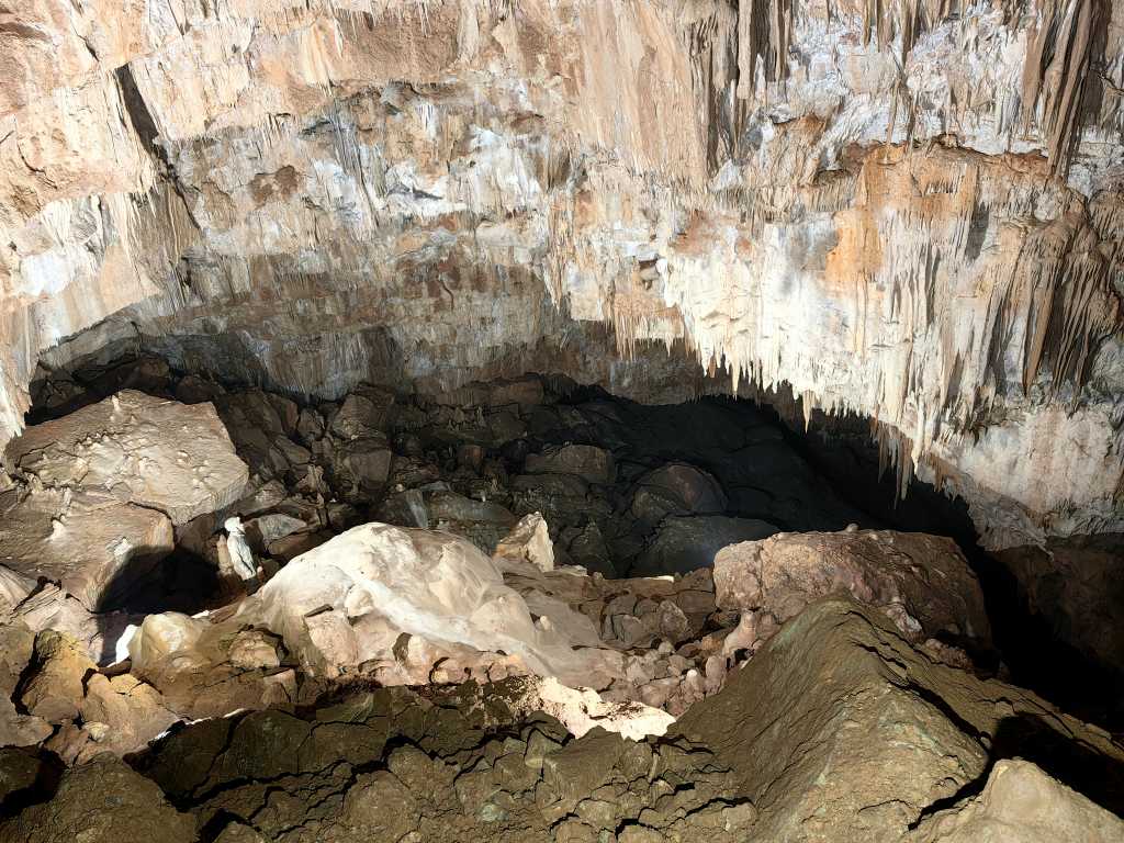 VL28. Натечная куча под сталактитовой стеной, вид со стороны завала