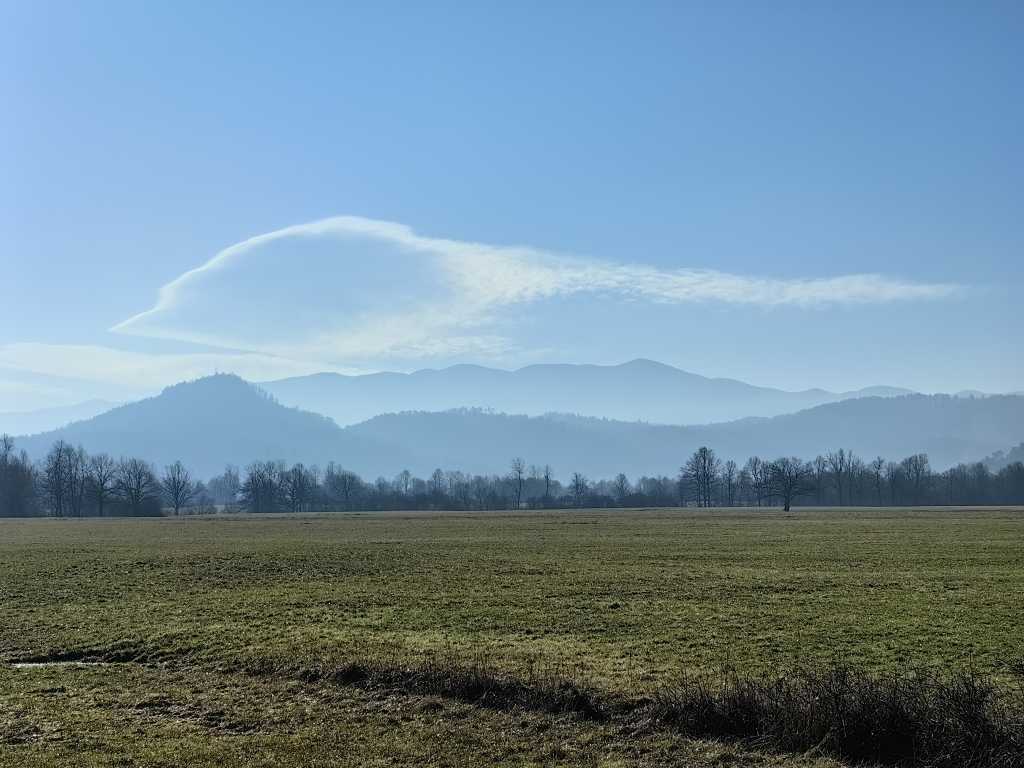 54888. Pogled proti jugu, za Javorniki je ovalen oblak z repom.
