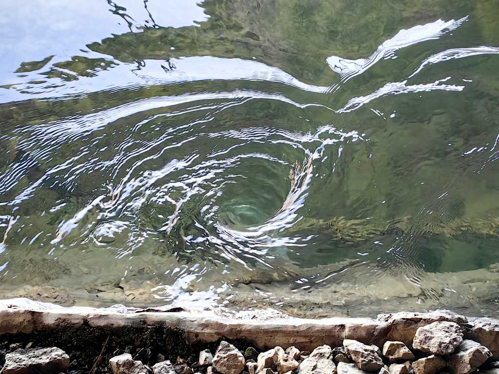 54898. Vrtinec pred okroglo cevjo v jezu na vhodu. Dolžina betonskega roba nad spodnjo stranico posnetka je 90 cm.