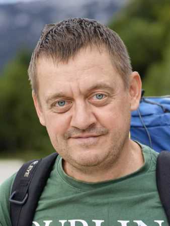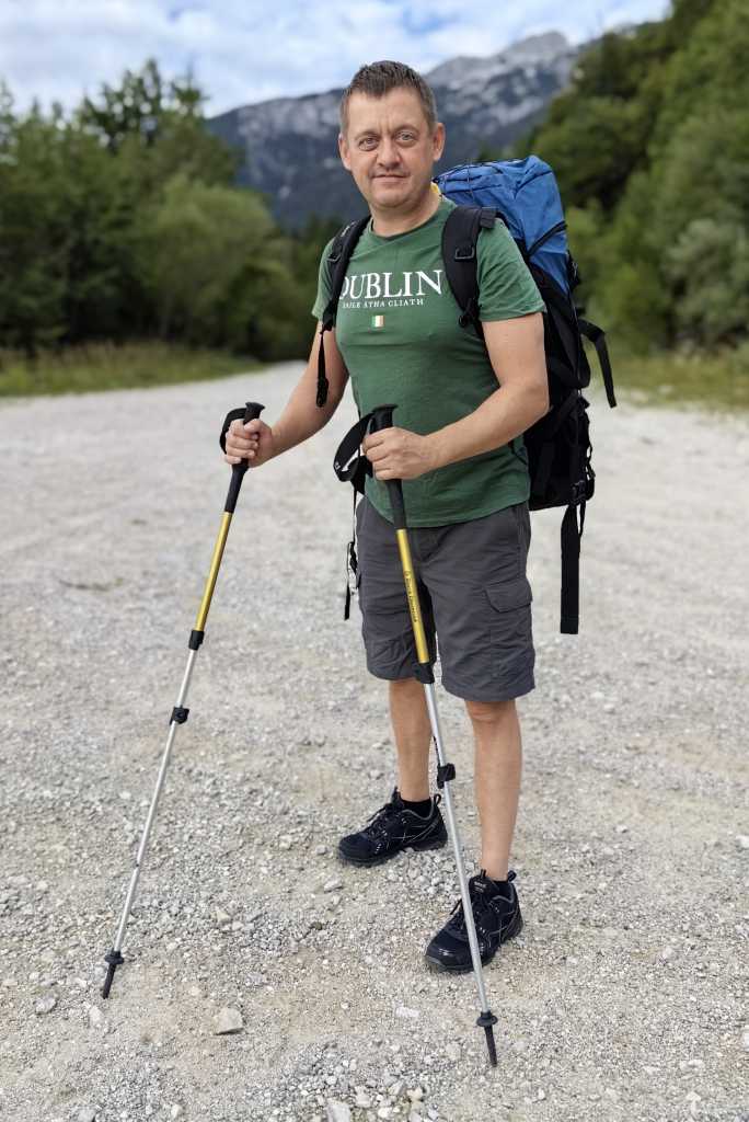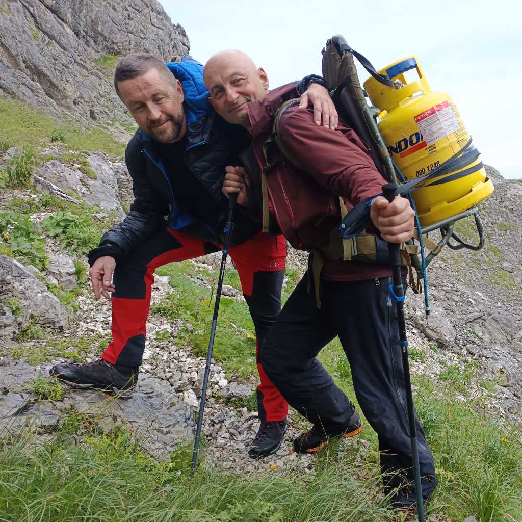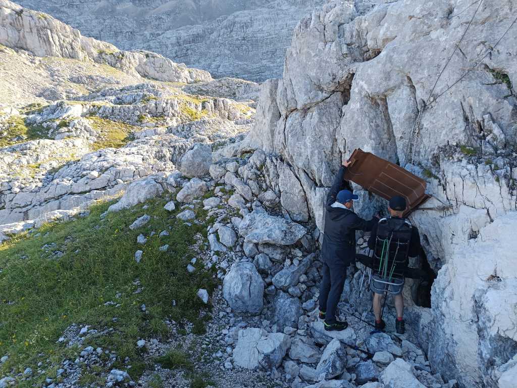 55830. Tu so se zbrali Ukrajinci in Ajdovci ter nekaj gostov, vodja poti na Kanin je bil pa Božo. Imel je lepe, bolj gorske sandale (na sliki), ki mu dobro služijo že nekaj let. Na nogah jih avtor ni uspel ujeti, ker se je Božo medtem že preobul v gojzarje. Ni jih še zavezal, do prave akcije je bilo udobneje v nezavezanih.