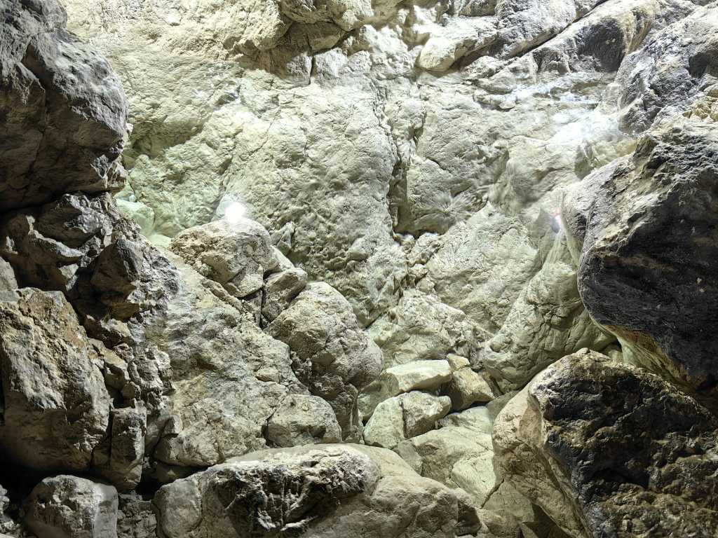 55861. Pogled s poti proti vrhu dvorane, zadnje plezarije se avtor sam raje ni lotil kljub napeljani vrvi, po dvorani nazaj proti vhodu.
