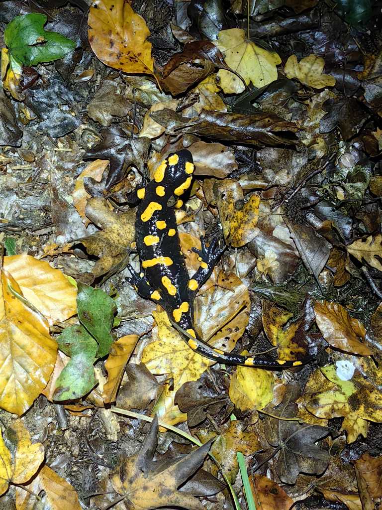 56107. Влажная и не слишком холодная погода привлекла на открытое пространство ещё одну саламандру.