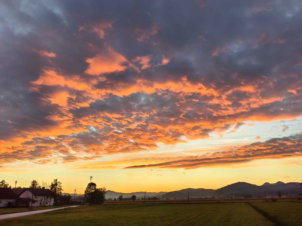 56120. Оранжево-фиолетовые облака вскоре после захода солнца над юго-западным краем равнины
