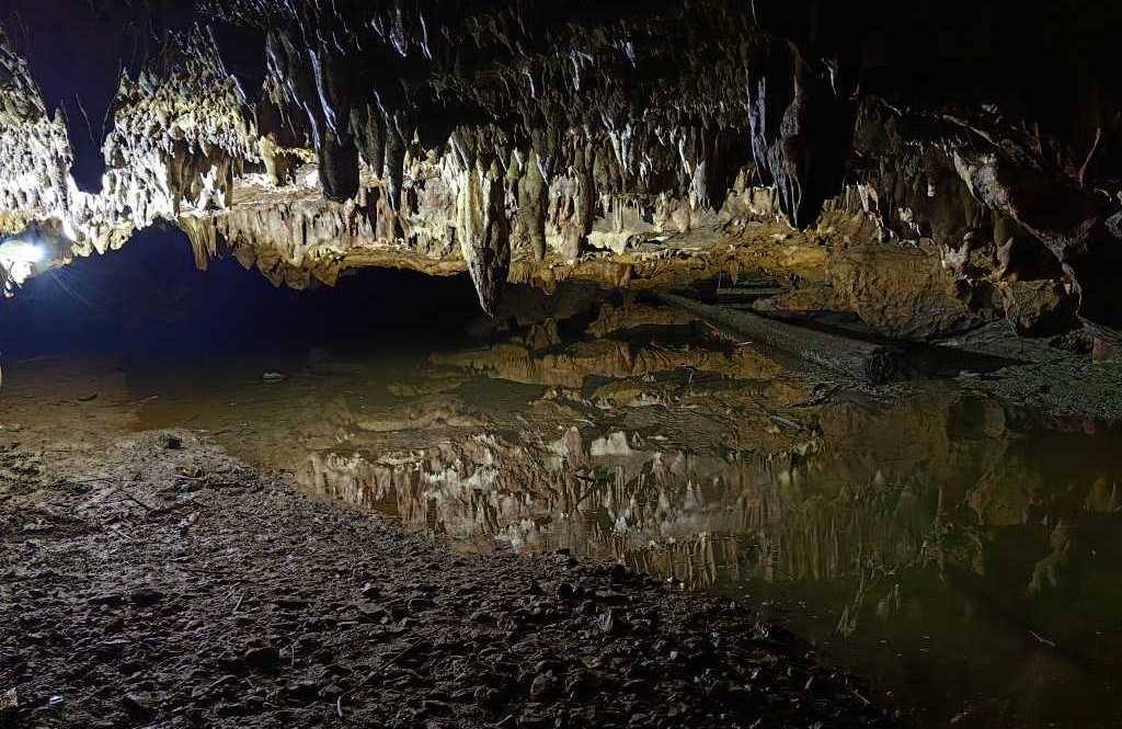 56143. Вид из прохода в Грязевой Зал обратно по тоннелю. Он низкий, грязевой и очень живописный.