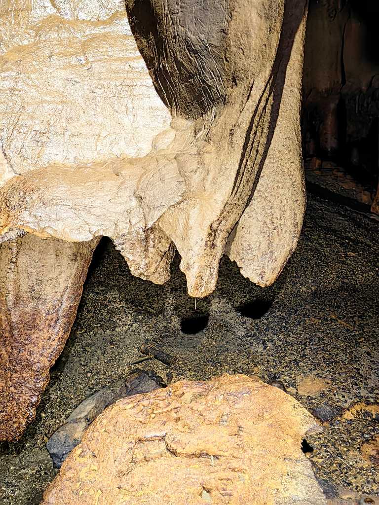 56181. Сталактит перевёрнутый «Триглав» или «коровье вымя», смотря кого спросить. Расстояние от основания до конца среднего сталактита составляет около 40 см.