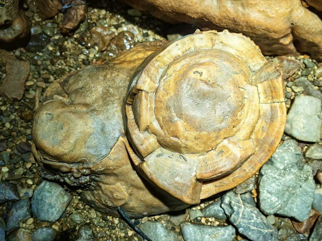 56184. Ещё один обломок сталагмита на полу, в форме «ложной улитки».