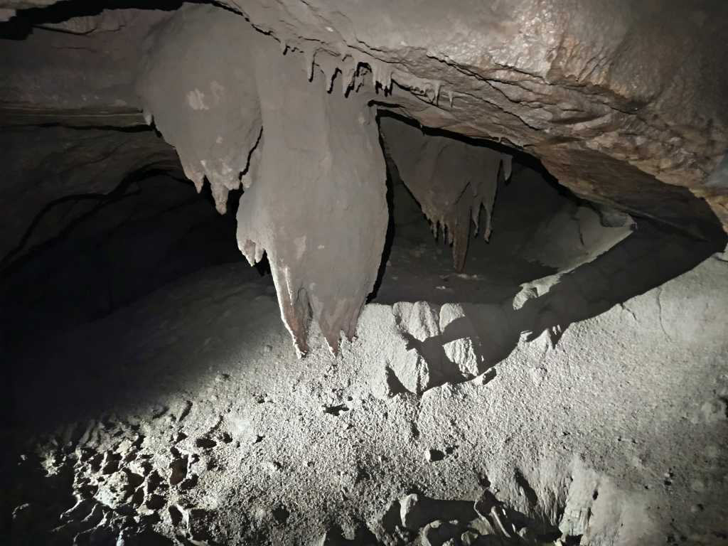 56666. Сталагмиты на краю натёчной кучи, как основание для пирса