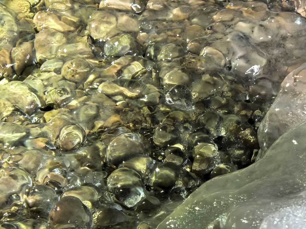 56432. Мелкие гладкие камешки на полу, покрытые глазурью льда