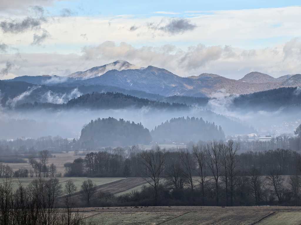 56696. The fog had already lifted a little and Grmada, 898 metres, appeared, followed by the highest mountain on the horizon, Tošč, 1021 metres above sea level.