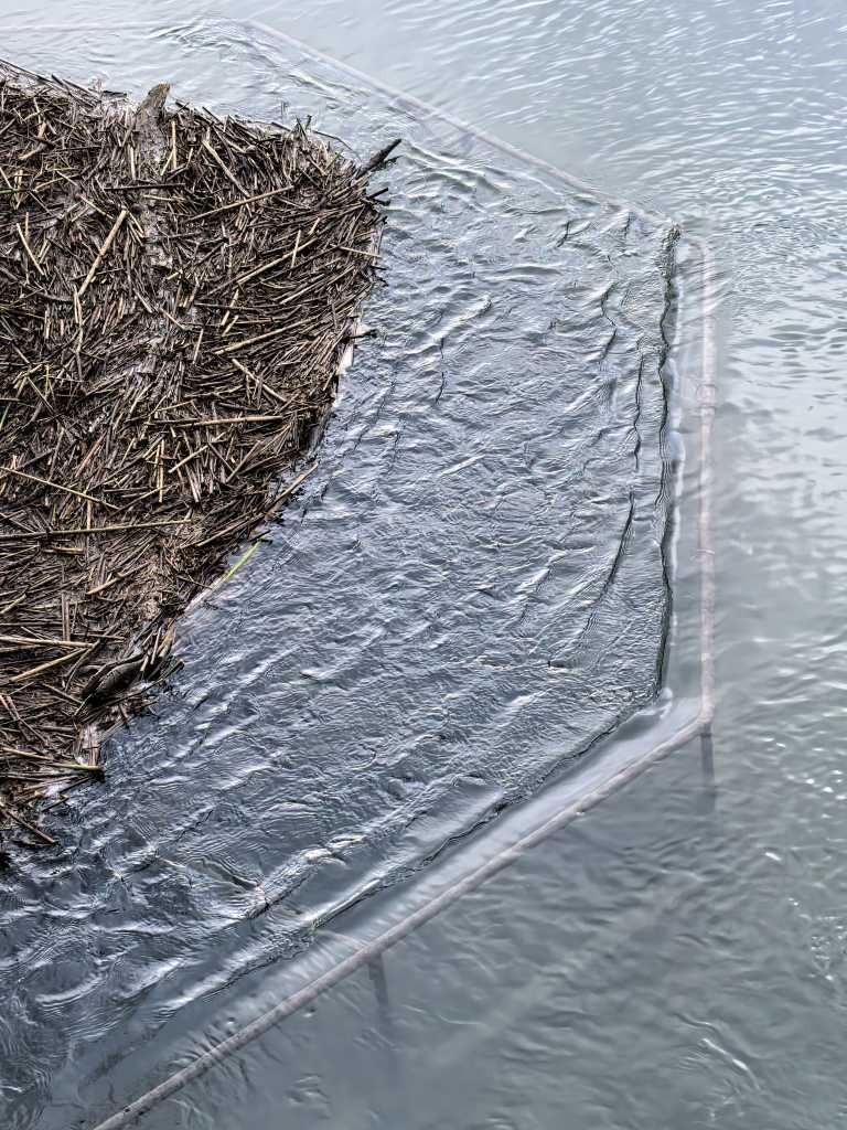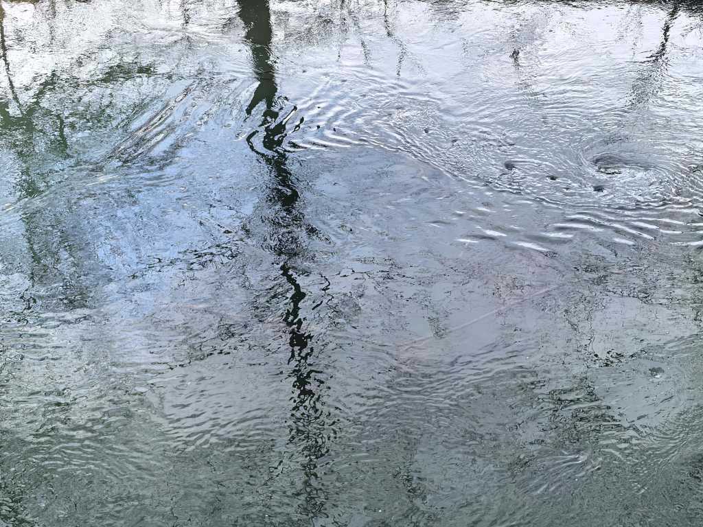 56707. ... while the fence of the western, Mali Katavotron, was a little deeper below the surface and could barely be noticed due to the reflections in the water. The view is from the path at the northern edge of the riverbed.