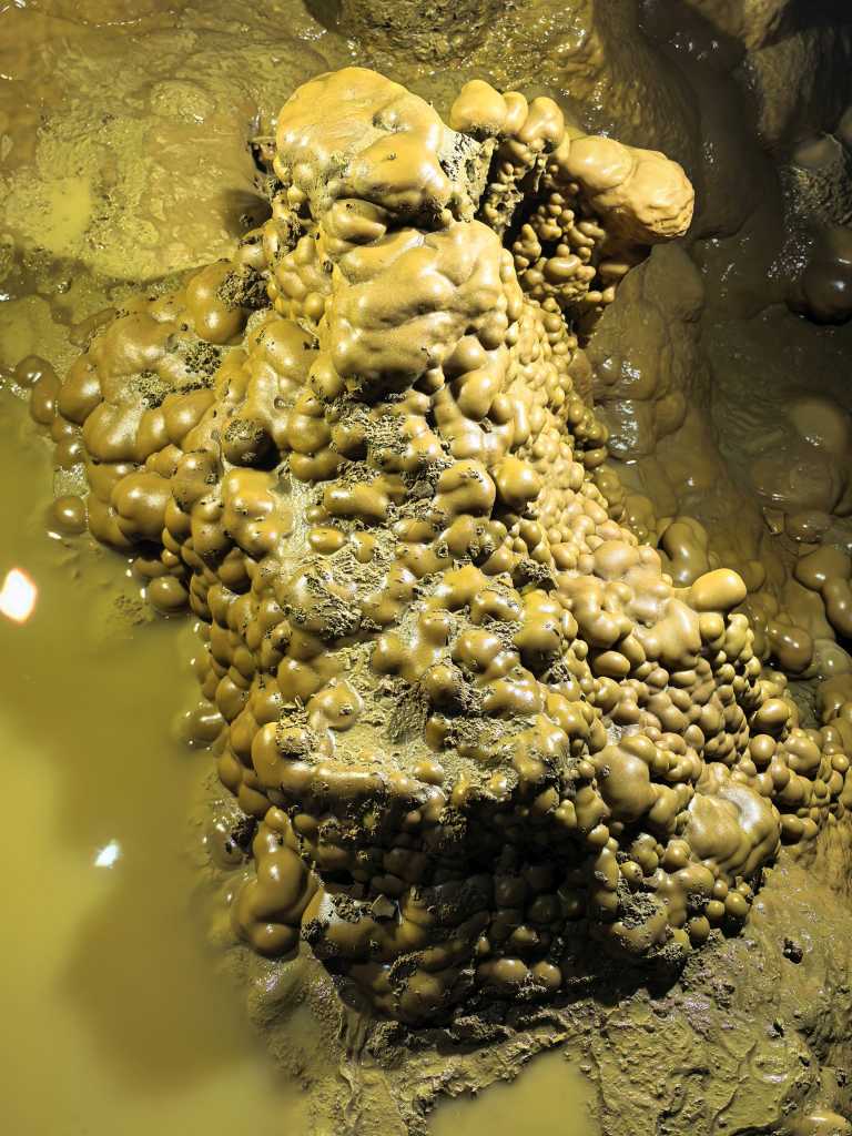 56774. Immediately below it is a shallow lake, and in it is a volcano-shaped dripstone cone, just under a meter high.