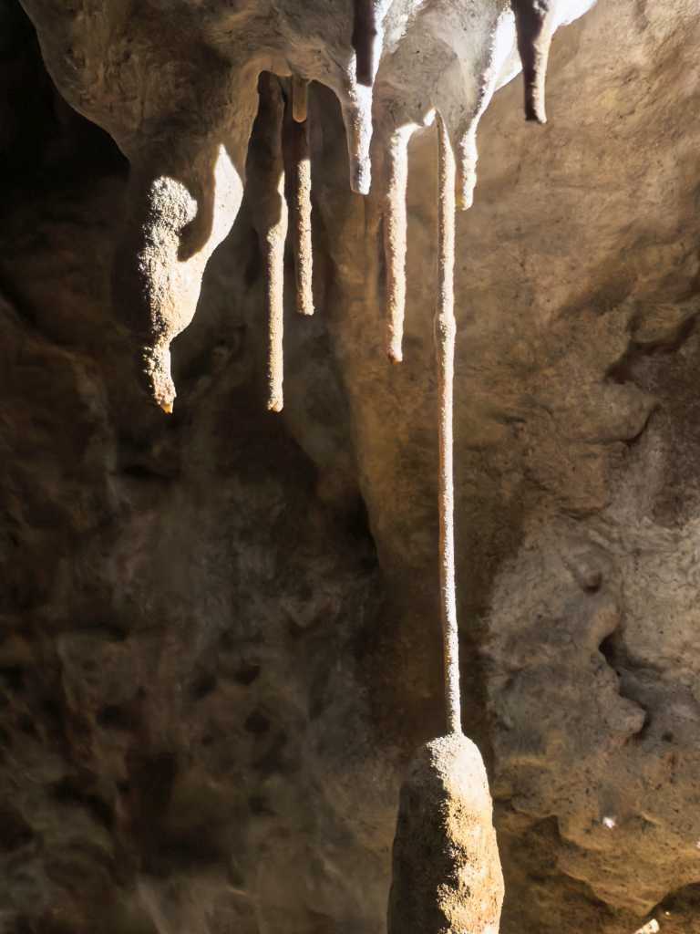 56786. Another very thin stalactite column, the height from stalagmite to the top is approximately 25 cm.