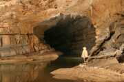 10. Sigasti potok v Rovu 17 slonov Najdene jame, pogled noter, Matija, september 2003, 60 x 80 cm Na koncu Zmajevega rova se odpre prohod proti Rovu 17 slonov, enem najlepših kotičkov Najdene jame. Na začetku rov ni nič posebnega, skalovje in ostanki potočka, potem pa se kmalu odpre vzpon proti gornjemu delu, ki se konča z breznom in sifonom. Na začetku tega vzpona je sigasta cesta s tega posnetka, ki ji sledi jezerce z nežnimi robovi. |