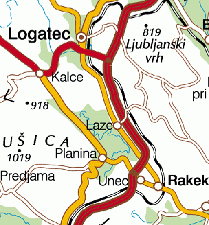 izvoza Logatec, potem naprej do prvega krožišča, kjer zavijemo levo