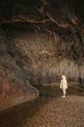 strani, Jana, april 2004, 104.5 x 69 cm Katernov rov je višja etaža, po kateri so nekoč tekle vode reke Pivke in se blizu današnjega slapa zlivale v reko Rak. Rov se imenuje po slovitem vodniku Janku Katerni, ki je v šestdesetih in sedemdesetih letih prejšnjega stoletja vodil obiskovalce po Planinski jami, zanimal se je pa tudi za arheologijo in vedel veliko zanimivih zgodb o jami in dogajanju okoli nje. Kasneje si je voda izdolbla nižjo, sedanjo strugo, Katernov rov pa se je začel počasi polniti s kapniškimi tvorbami. Zelo lepe so prav na začetku rova, ki je dostopen samo po strmini nad slapom v Rakovem rokavu. |